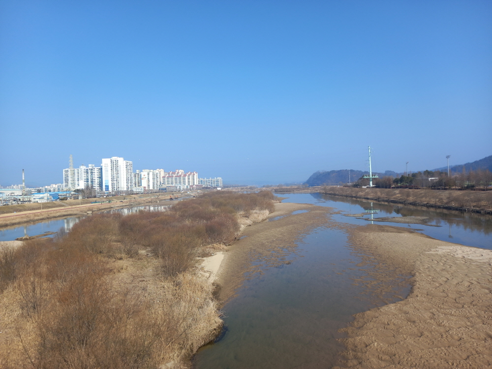 오늘은 금산교를 건너서 초장동~하대동 방향의 남강을 걷고