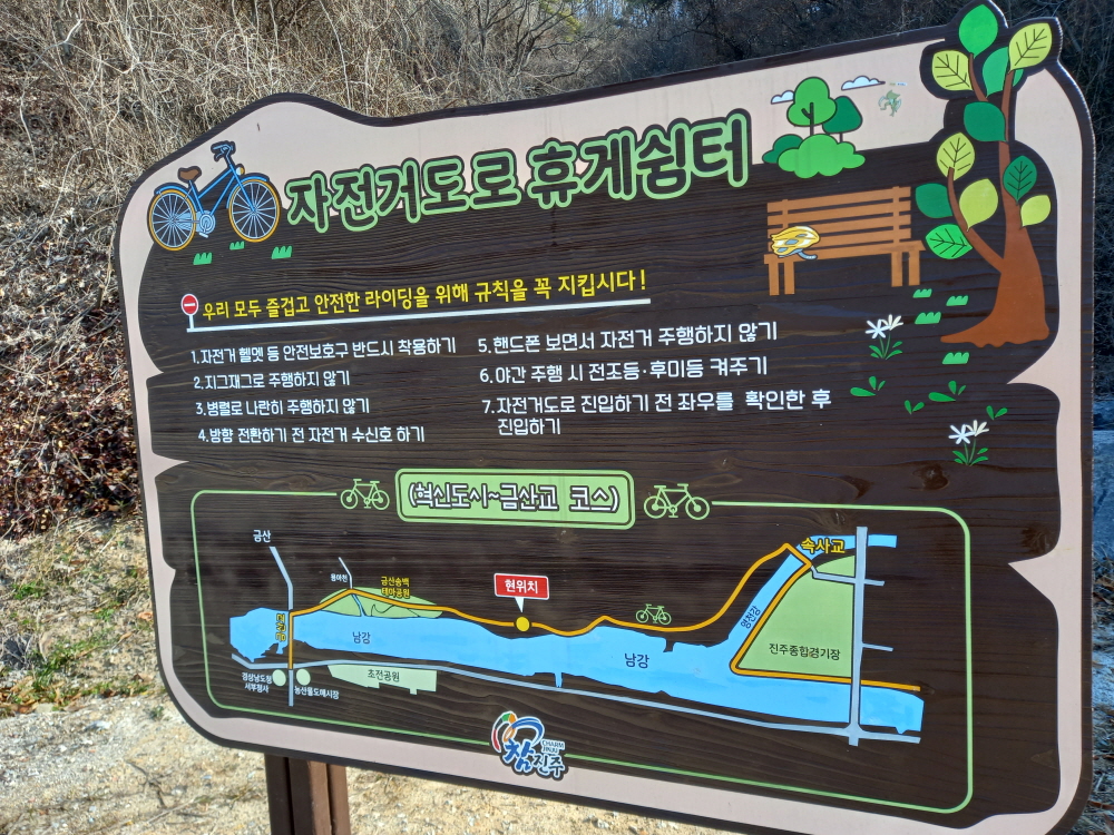 남강교를 건너서 충무공동을 거쳐서 금산면으로 돌아오는 코스입니다.